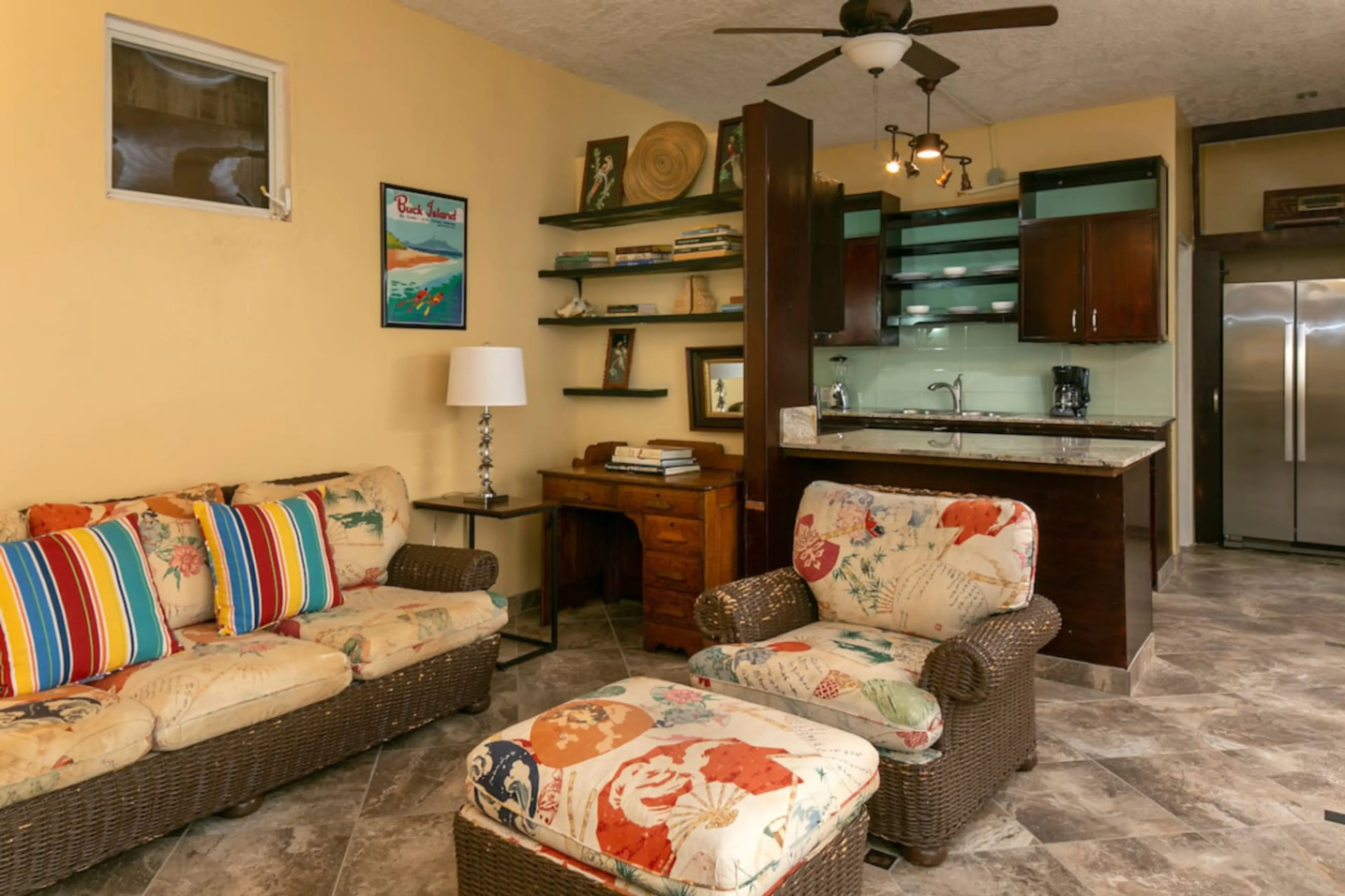 Little Cay is a budget-friendly oceanview retreat perfect for small families. The master bedroom features a king bed, while the second bedroom has twin bunk beds kids love. Enjoy a quaint but fully equipped kitchen, cozy living area, indoor dining, and a grassy yard with fruit trees. Relax under the...